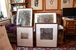 Geschichte, Erinnerung und Schaffen – die fängt Hartwig Hamer in seinen Zeichnungen ein. Die Kunstkommission besuchte den Künstler in seinem Schweriner Wohnzimmer. Seine Werke gehören seit 2024 zum Landeskunstbesitz.