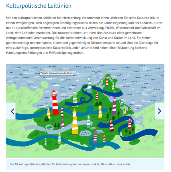 Die Künstlerin Jana Kreisl hat nicht nur die Broschüre „Kulturpolitische Leitlinien für Mecklenburg-Vorpommern" illustriert, sie hat auch die vier Regionalkonferenzen begleitet und in Graphic Recordings zusammengefasst. Ein Rückblick in Bildern.