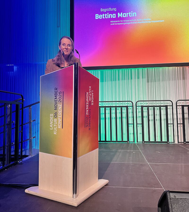 Kulturministerin Bettina Martin eröffnet die Landeskulturkonferenz. „Flagge zeigen: Kultur stark machen!“ lautet das Motto. Es geht um Kulturelle Grundversorgung. Um Daseinsvorsorge. Zusammenhalt. Gemeinschaft und Perspektiven. Und natürlich auch Finanzen. Denn: „Kunst ist keine freiwillige Nebensache, sondern ein Grundpfeiler des gesellschaftlichen Miteinanders“, so die Ministerin. Gleichwohl stehe die Kultur auch in Deutschland vor großen Herausforderungen. Finanziell, weil viele kommunale Kassen klamm seien. Aber auch aus politischer Sicht. „Was tun, wenn die sogenannte Leitkultur den Maßstab bilden soll? Politisch motiviert und nicht an Vielfalt und künstlerischen Kriterien orientiert?“ Auch darüber solle heute diskutiert werden.