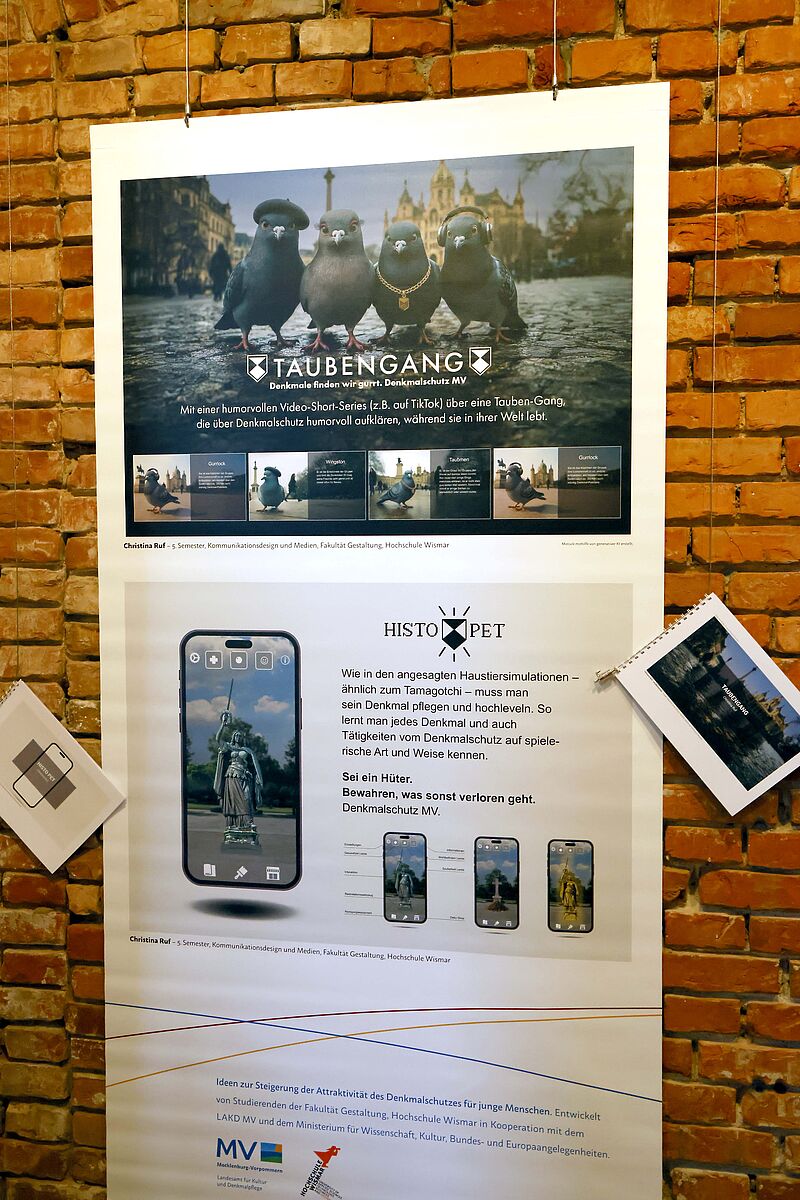 „Denkmalschutz auch für junge Menschen zu einem spannenden Thema zu machen und ihr Interesse dafür zu gewinnen, ist den Studierenden der Hochschule Wismar mit ihren Arbeiten sehr gut gelungen“, sagte Kulturministerin Bettina Martin zur Eröffnung der Ausstellung am Dienstag. „Die Exponate zeigen neue Ansätze, die Denkmalschutz greifbar machen und auch zeigen, wie lebendig, jung und modern Denkmalschutz sein kann.“