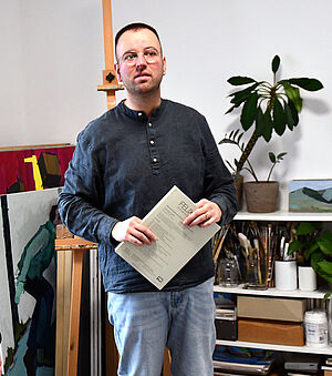Starke Bildsprache und feines Gespür für Stimmungen: Felix Jess erzeugt Werke, die sich zwischen Sehnsucht, alltäglicher Erfahrung und tiefer Empfindung bewegen. Seine Malerei macht das Unsichtbare sichtbar. Zwei Arbeiten gehören zum Landeskunstbesitz.