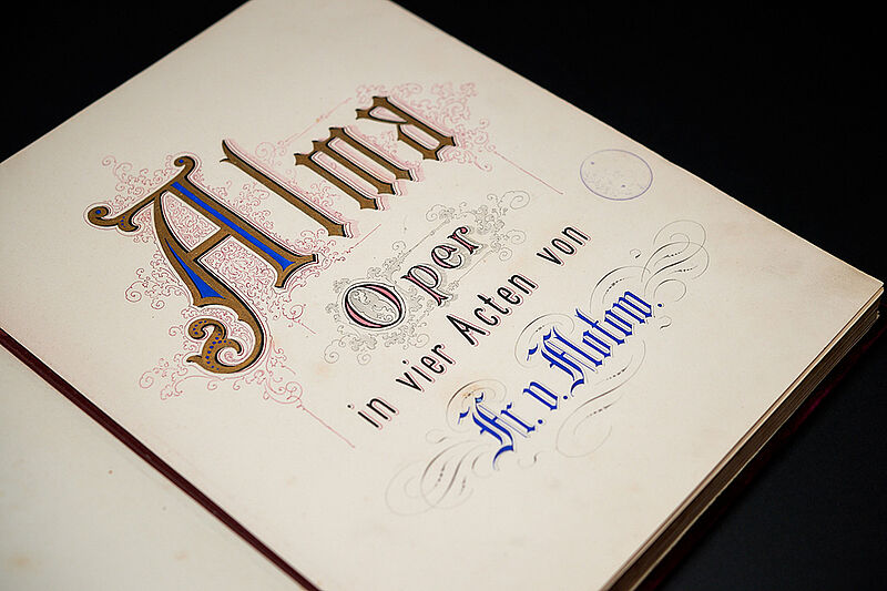 Auf den ersten Blick ist es ein Buch mit Noten, eingefasst in roten Samt. Klappt man den Buchdeckel auf, zeigt sich Alma, eine Oper von Friedrich von Flotow. Und für MV ein besonderes Dokument der Zeitgeschichte. Die deutschsprachige Fassung der Oper wurde am 1. März 1879 in Schwerin uraufgeführt. Im November desselben Jahres überreichte der international erfolgreiche Komponist und ehemalige Intendant des Schweriner Hoftheaters – Friedrich von Flotow – dem regierenden Herzog Friedrich Franz II. dieses rote Buch: einen eigenhändig geschriebenen, prachtvoll ausgestatteten Klavierauszug mit Goldapplikationen und purpurfarbenem Samteinband. Knapp 150 Jahre später haben sich die Buchdeckel vom Buchblock gelöst. Und auch die originale hölzerne Buchkassette braucht eine Reparatur.